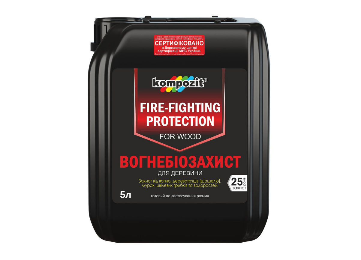 Сертифіковане засіб захисту дерев'яних конструкцій від загоряння та розповсюдження полум'я. Склад переводить деревину в трудногорючий і важкозаймистий матеріал, забезпечує I (першу) групу вогнезахисної ефективності, що відповідає будівельним нормам ДБН В.1.1.7-2002. Надійна комплексний захист від цвілі, гниття, поразки комахами-червицями будь-яких дерев'яних поверхонь.